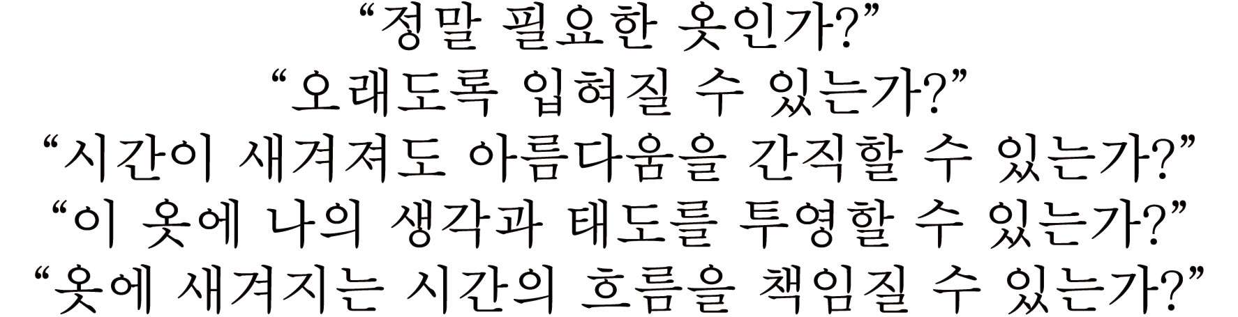 그 옷이 지닌 태도와 사유, 그리고 미래에 대한 의지를 함께 입는 일입니다.